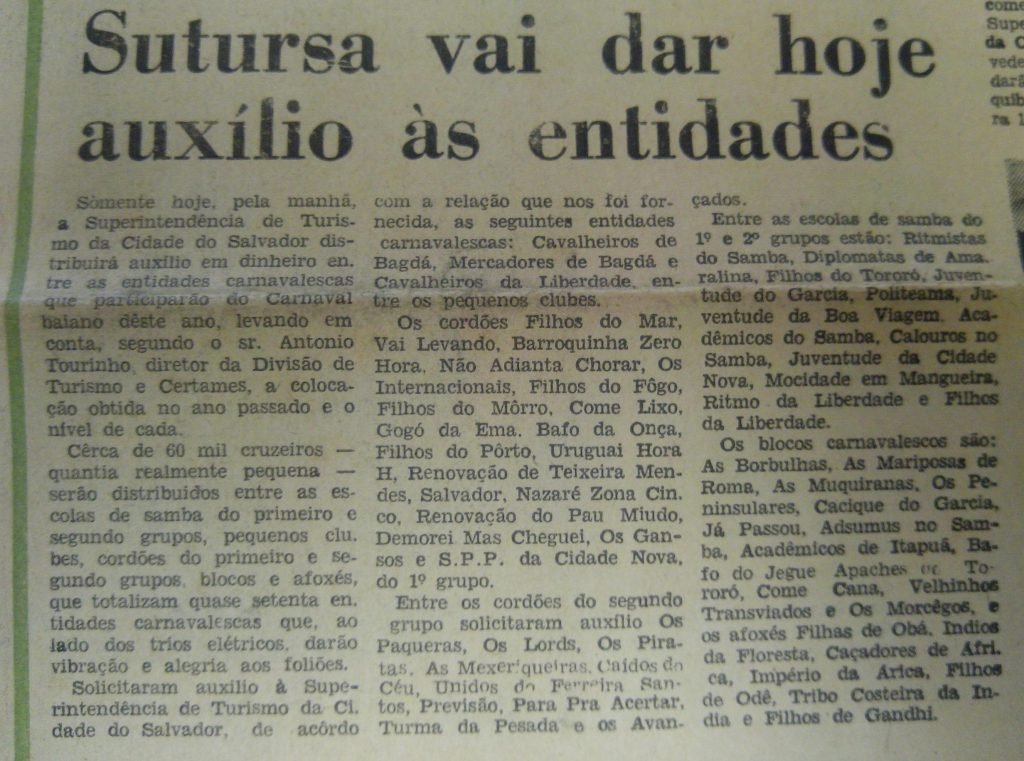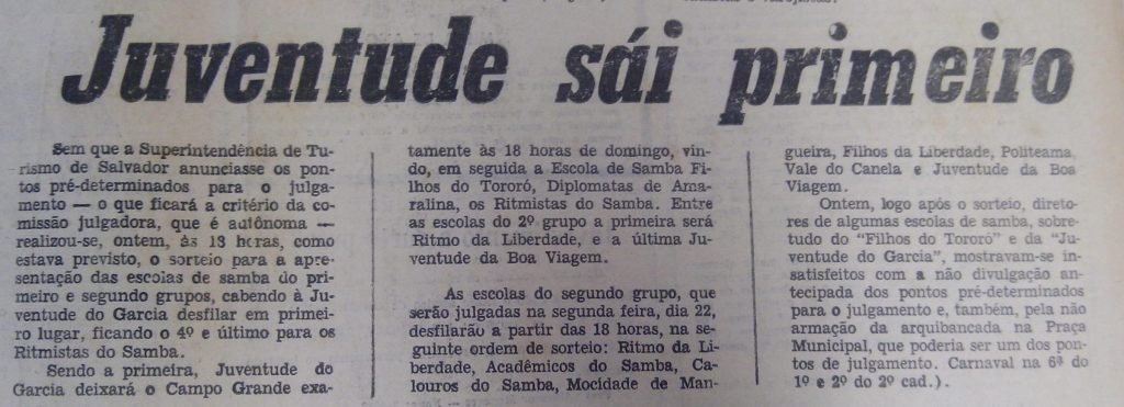 DIARIODENOTICIAS30.01.1971 – CORDOES E ESCOLAS DE SAMBA NA PITUBA