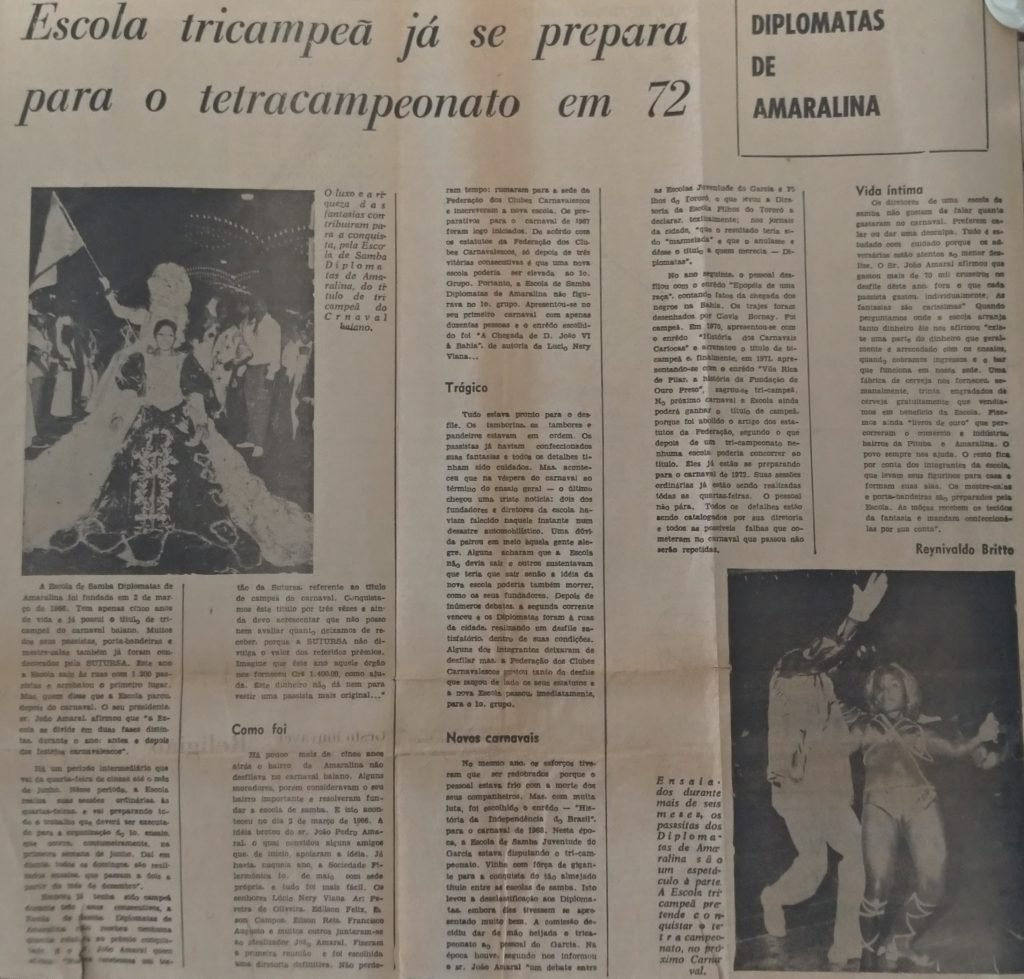 DIARIODENOTICIAS23.01.1971 – ESCOLA DE SAMBA DIPLOMATAS DE AMARALINA ENTREVISTA