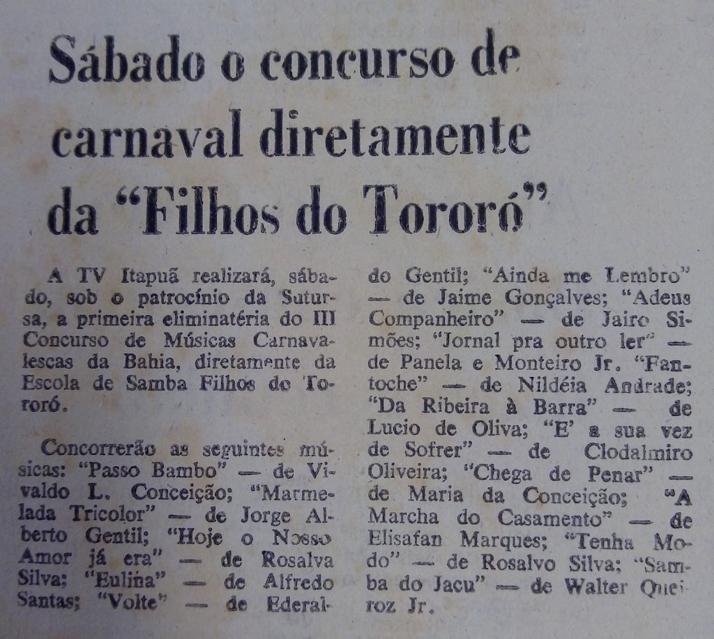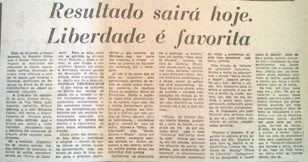 DIARIODENOTICIAS04.03.1965 – ESCOLA DE SAMBA FILHOS DO TORORO CAMPEA FOTO